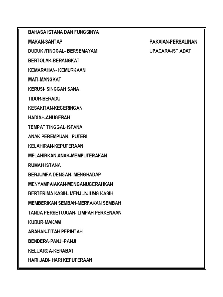 Contoh Bahasa Istana Senarai Ayat Terbaik Pt3