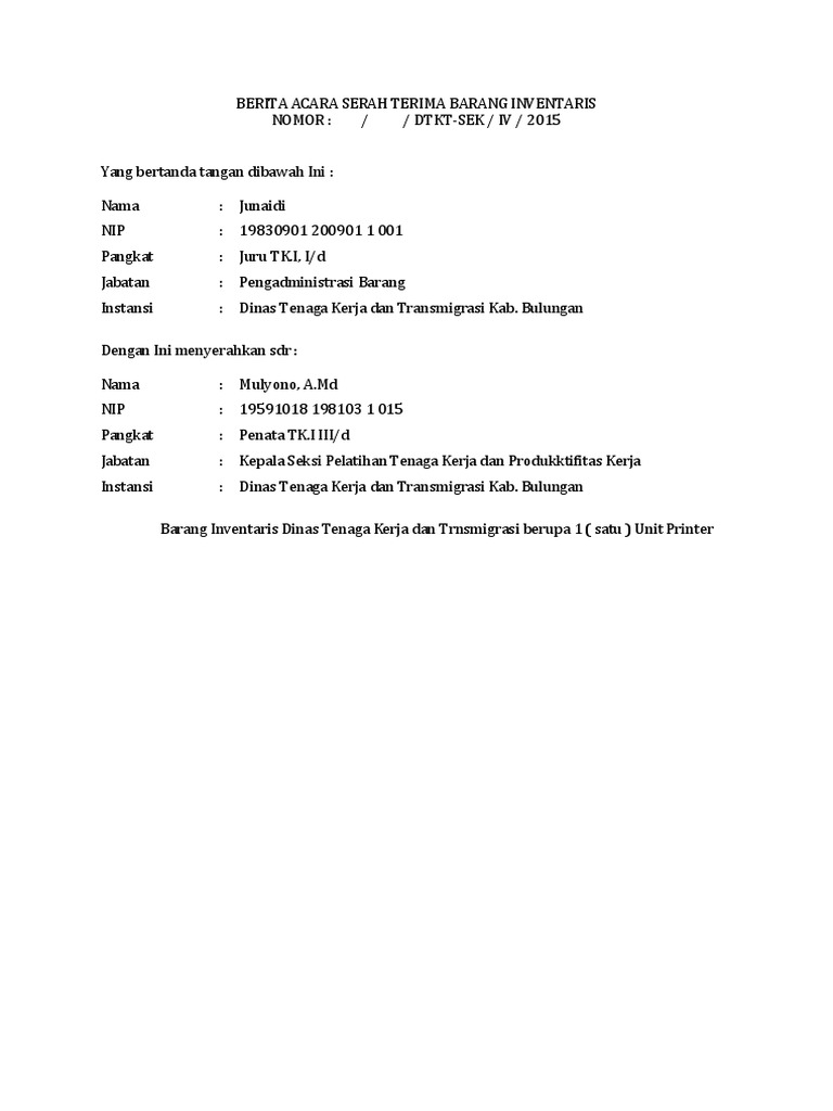 Contoh Surat Serah Terima Barang Inventaris Kantordoc Backup Gambar