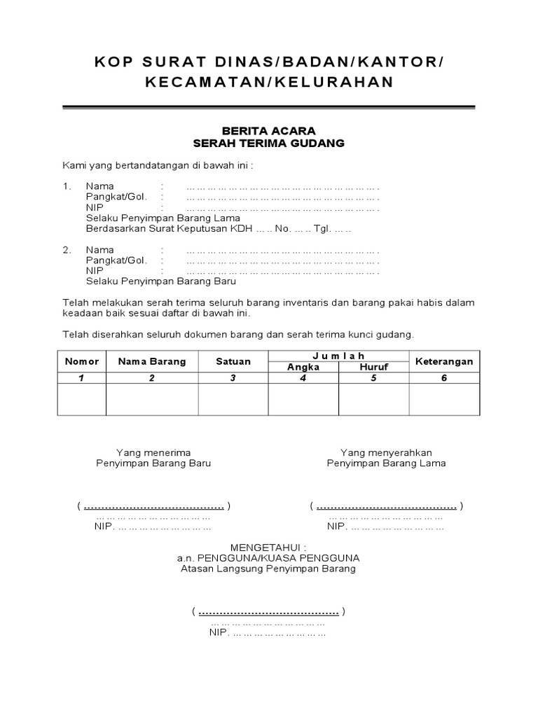 5 Contoh Surat Serah Terima Barang Investaris Dinas Dan Pengadaan