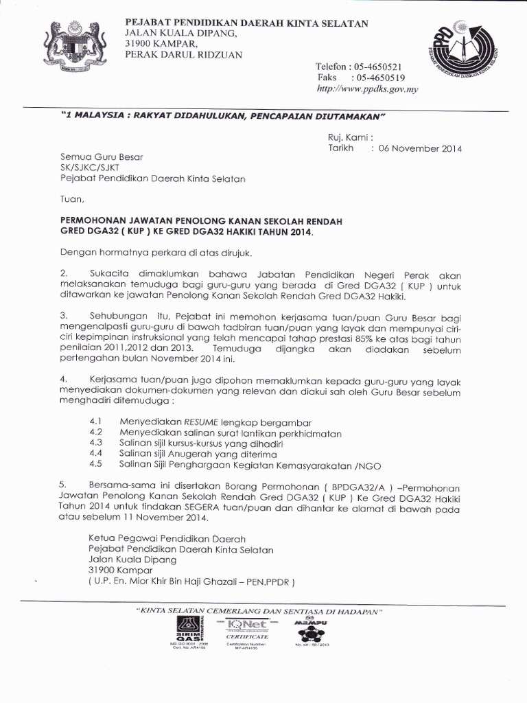 Surat Permohonan Jawatan Guru Penolong Kanan J Kosong W