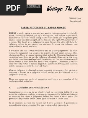 Writings The Muse Paper Judgment To Paper Money Garnishment Judgment Law