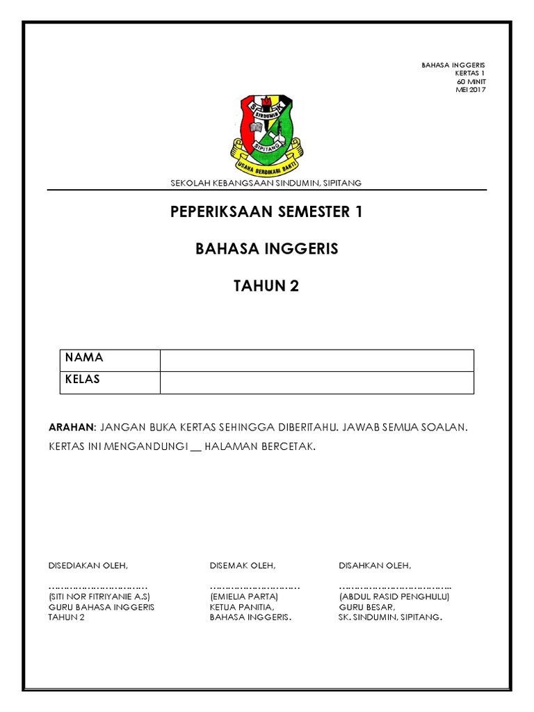 Ujian English Year1 Paper 2 Kssr
