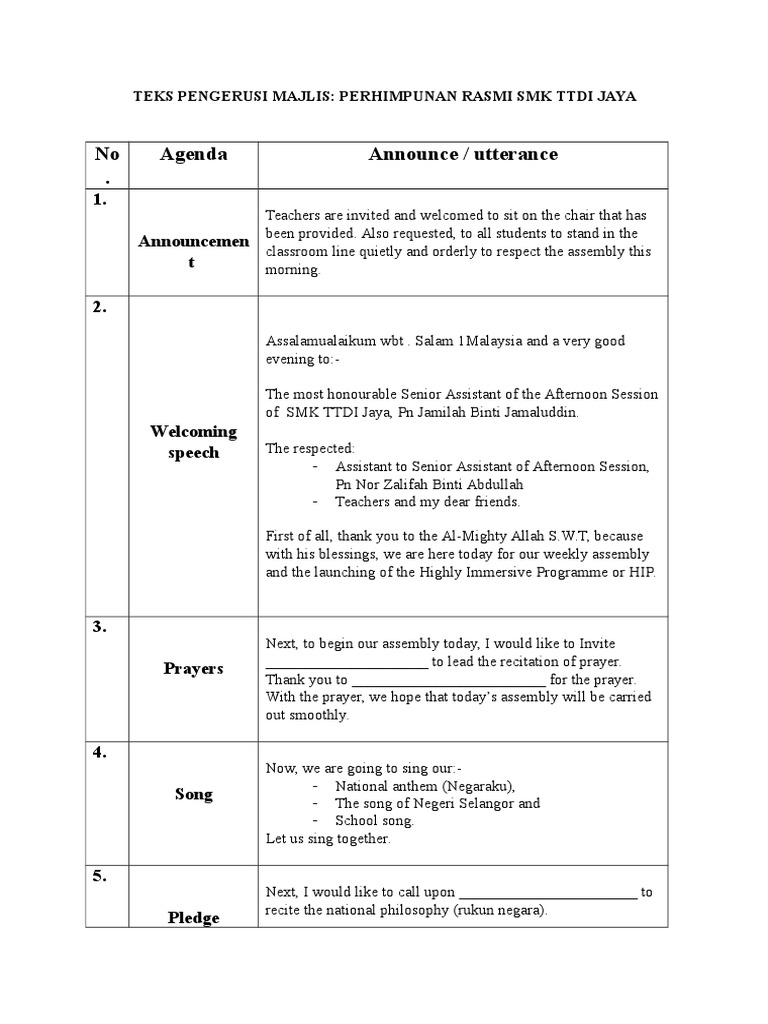 Teks pengerusi majlis english version 7. Master of ceremony by prefect on duty. Our very first project for hip. Ladies and gentlemen with the speech from our beloved headmaster just now our highly immersive programme hip is officially officiated.
