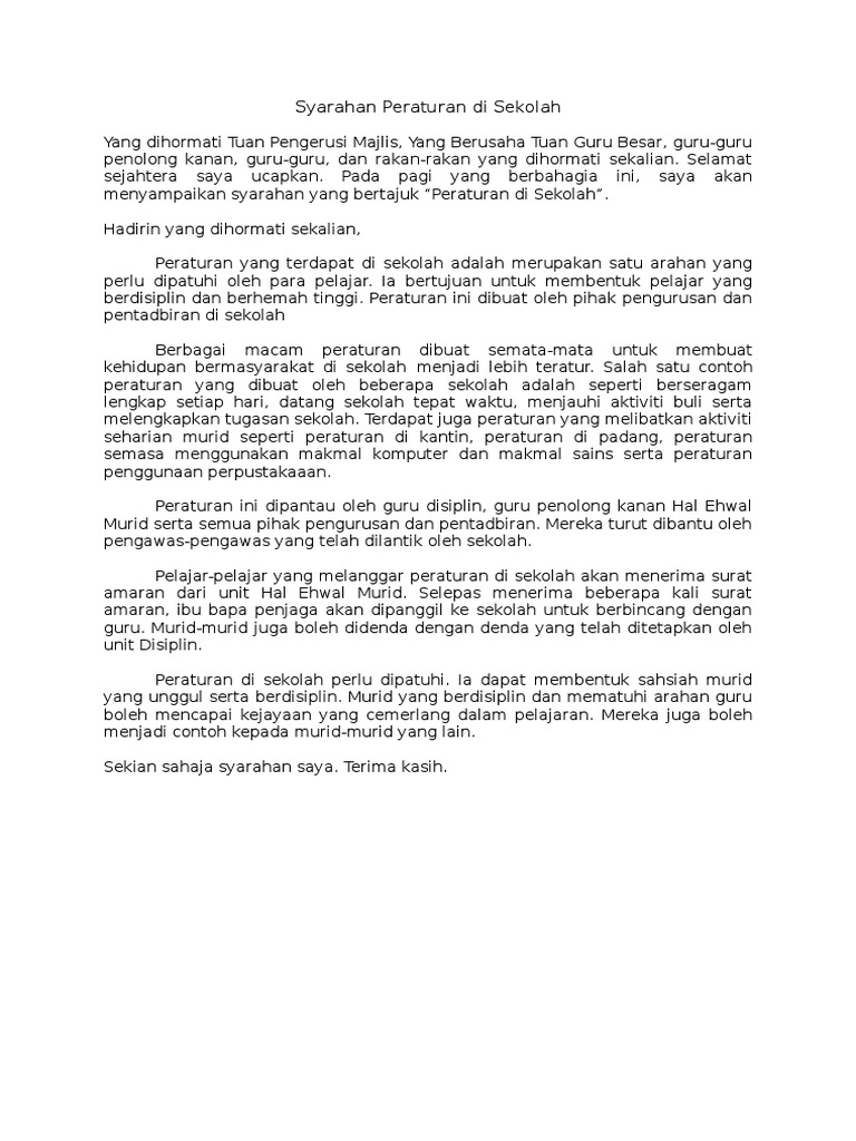 Contoh Karangan Bahagian A Kepentingan Peraturan Di Sekolah