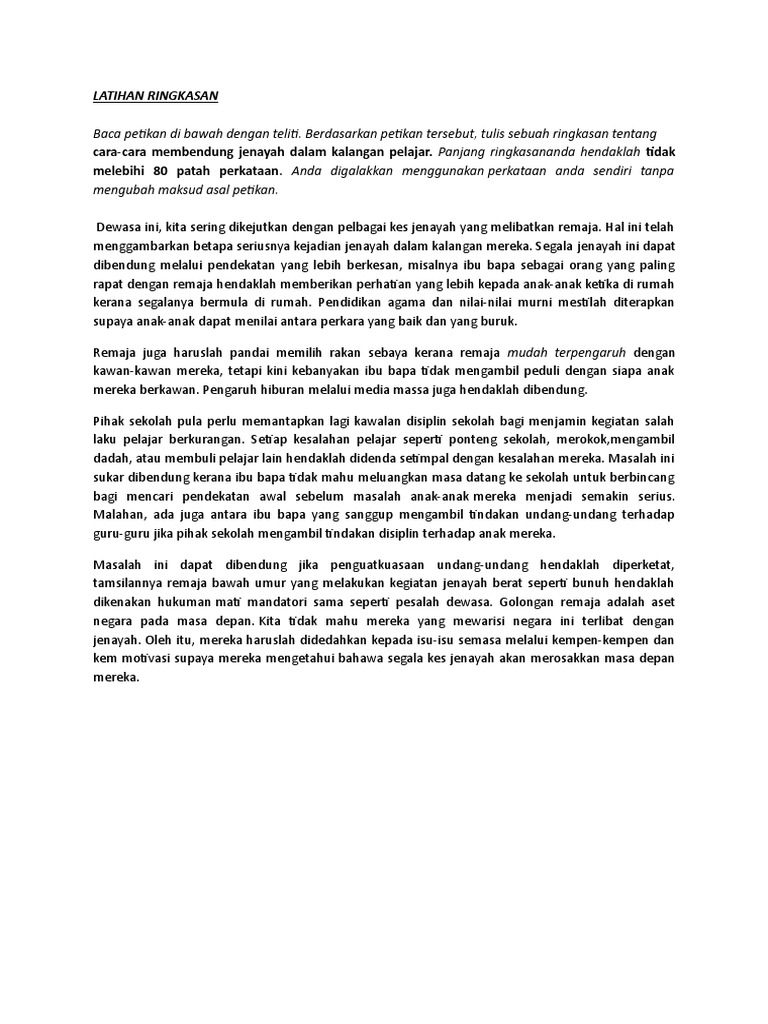 Contoh Soalan Ringkasan Karangan Tingkatan 1 Selangor B