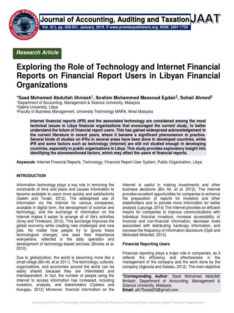 Exploring The Role Of Technology And Internet Financial Reports On Financial Report Users In Libyan Financial Organizations Financial Statement Investor