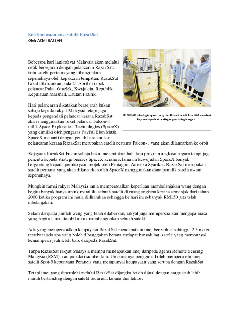Keistimewaan Misi Satelit Razaksat