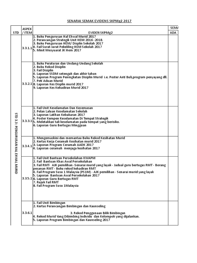 Senarai Semak Evidens Skpmg2 Smk Segama Lahad Datu 2