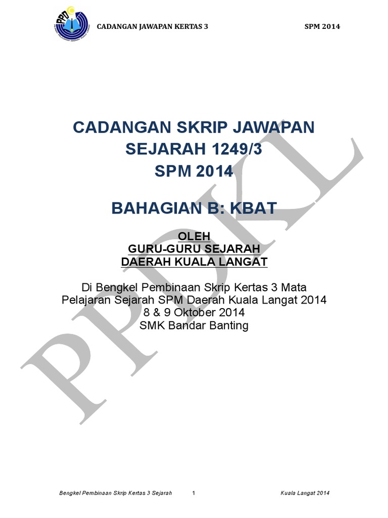 Contoh 2 Cadangan Skrip Jawapan Kbat Kertas 3 Sejarah Spm 2014 Ppd Kuala Langat