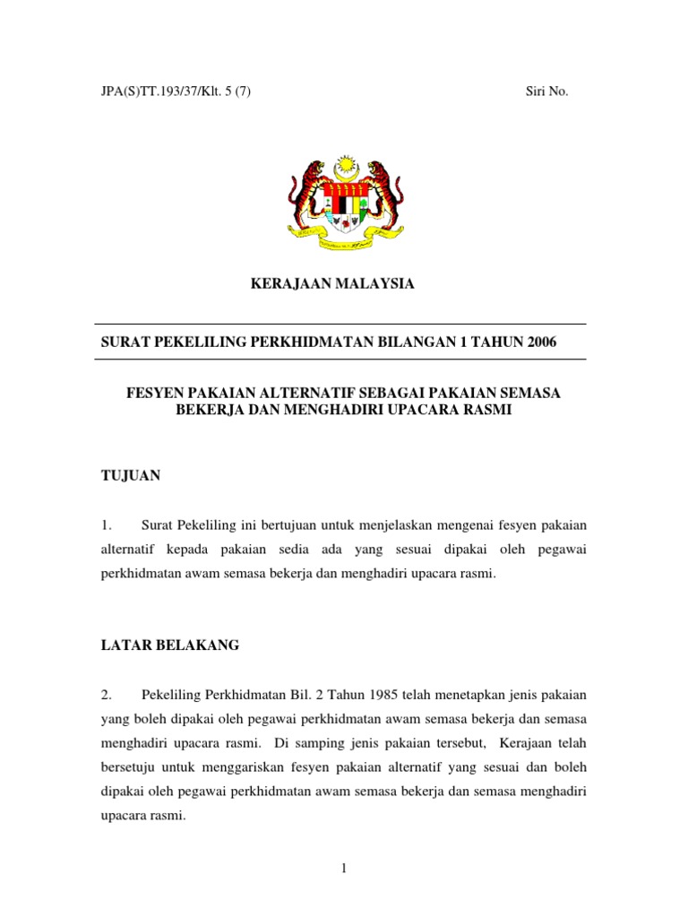 Surat Pekeliling Perkhidmatan Bilangan 1 Tahun 2006 Pdf Pdf Document